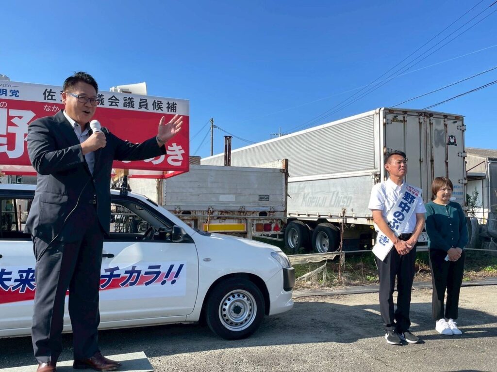活動報告 佐賀市議選、告示!(野中候補) 2025.10.12 2025.12.03 Tweet Share この記事のタイトルとURLをコピーする 自公連立政権の離脱後、初の地方選となる佐賀市議選が12日告示され、19日の投票日に向けて舌戦がスタートしました。 6期目に挑む野中のぶあき候補の第一声に駆け付け、「実績豊富な野中候補の断固勝利を!」と訴え。 Tweet Share
