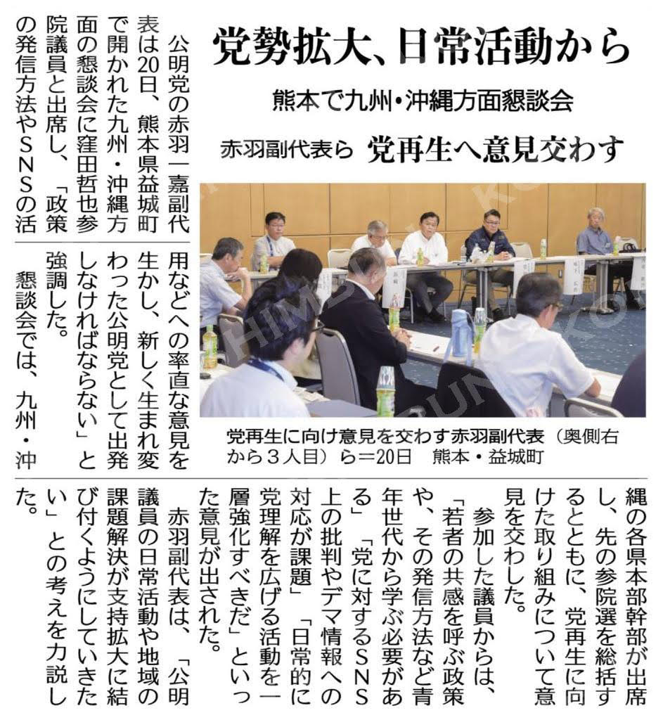 お知らせ 公明新聞:九州・沖縄方面懇談会 2025.08.21 2025.12.05 Tweet Share この記事のタイトルとURLをコピーする 2025年8月21日 公明新聞 2面 党勢拡大、日常活動から/赤羽副代表ら、党再生へ意見交わす/熊本で九州・沖縄方面懇談会 Tweet Share