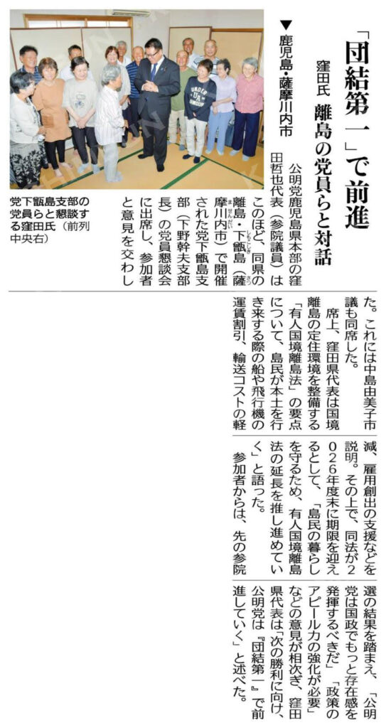 お知らせ 公明新聞:団結第一 2025.09.25 2025.12.04 Tweet Share この記事のタイトルとURLをコピーする 2025年9月25日 公明新聞 6面 「団結第一」で前進/窪田氏、離島の党員らと対話/鹿児島・薩摩川内市 Tweet Share