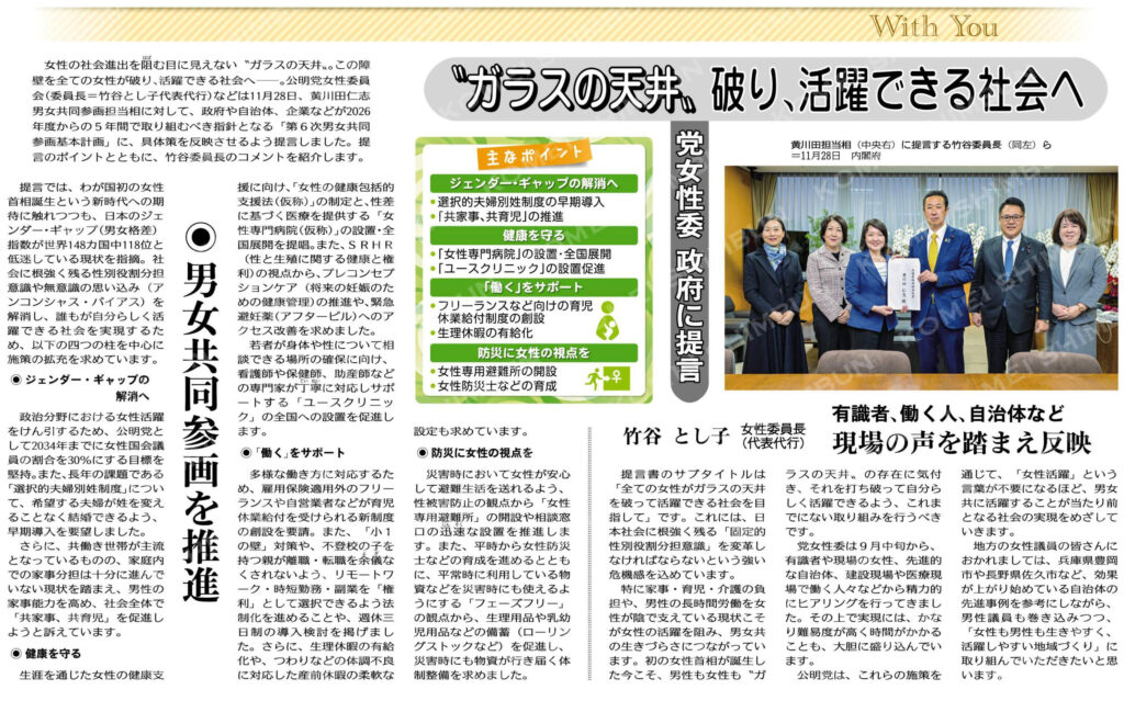 お知らせ 公明新聞:男女共同参画を推進! 2025.12.17 Tweet Share この記事のタイトルとURLをコピーする 2025年12月17日 公明新聞 4面 (With You) “ガラスの天井”破り、活躍できる社会へ 党女性委、政府に提言 Tweet Share