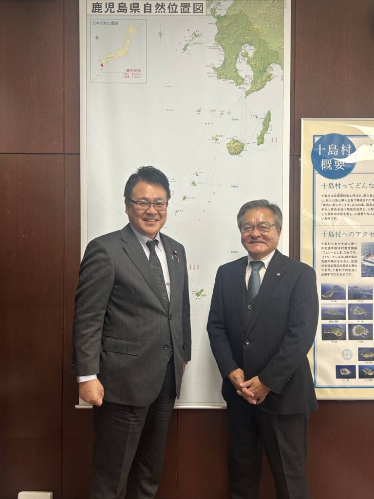 活動報告 島の暮らしと産業を守る! 2025.12.22 2026.01.07 Tweet Share この記事のタイトルとURLをコピーする 22日、鹿児島県三島、十島両村役場を訪問し、岩切平治(三島)、久保源一郎(十島)の両村長と懇談。 両村は、薩南諸島の島々で構成され、役場はともに鹿児島市内にあります。 有人国境離島法の拡充・延長などを巡り意見を交換。全力で島の暮らしと産業を守ります! Tweet Share