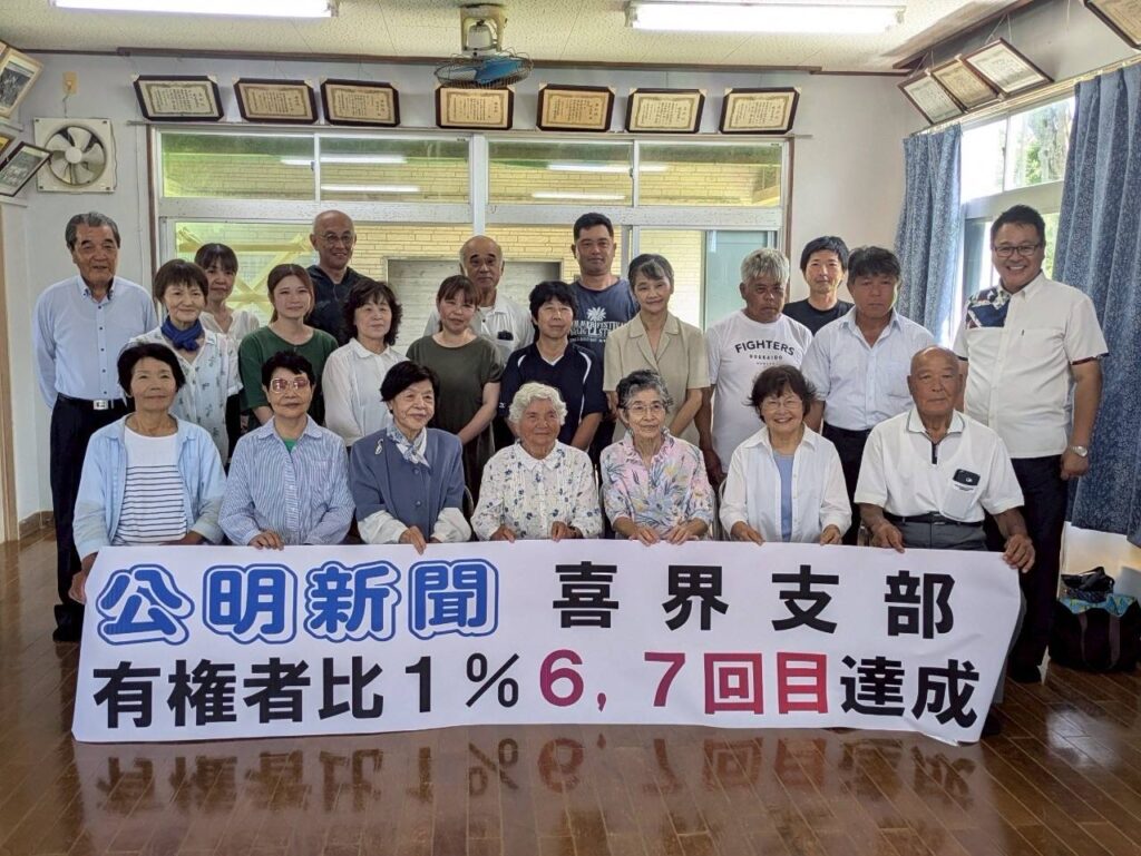 活動報告 鹿児島・喜界支部会! 2025.08.03 2025.12.08 Tweet Share この記事のタイトルとURLをコピーする 公明党鹿児島・喜界支部(生駒弘支部長=喜界町議)の支部会が3日、喜界町内で開催され、参院選での支持拡大に感謝。 離島故の物価高対策などに引き続き努力する決意を語りました。 同支部は、公明新聞購読者の対有権者比1%も達成! Tweet Share