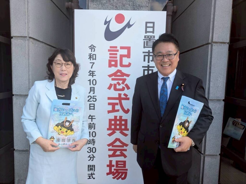 日置市市制20周年式典 2025.10.25 2025.12.03 Tweet Share この記事のタイトルとURLをコピーする 日置市(鹿児島)市制20周年式典が25日に開催され、出席しました。 手厚い子育て支援などによって、同市が幸福度県内1位にランキングされていることを強調。 インフラ整備や産業振興で、さらなる魅力の向上を! 公明党・黒田澄子市議と。 Tweet Share